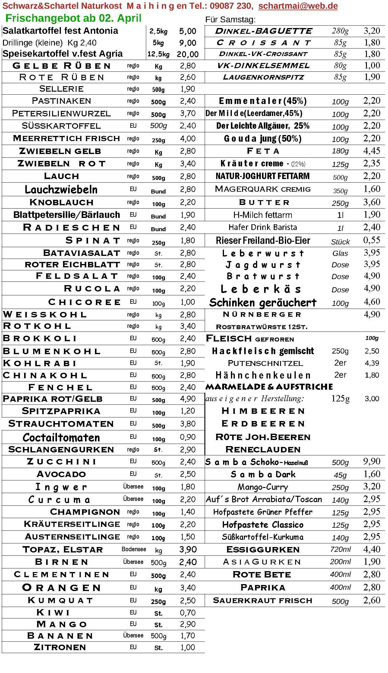 oder Bestell-Mail über den schartmai@web.de - Button schicken